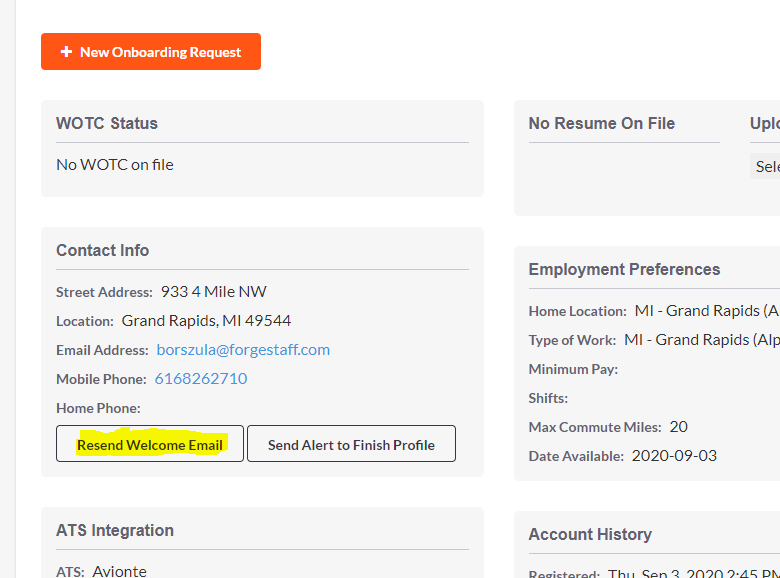 You will need to find the SA in Able and make sure their email address is up to date. Click on, "Resend Welcome Email".