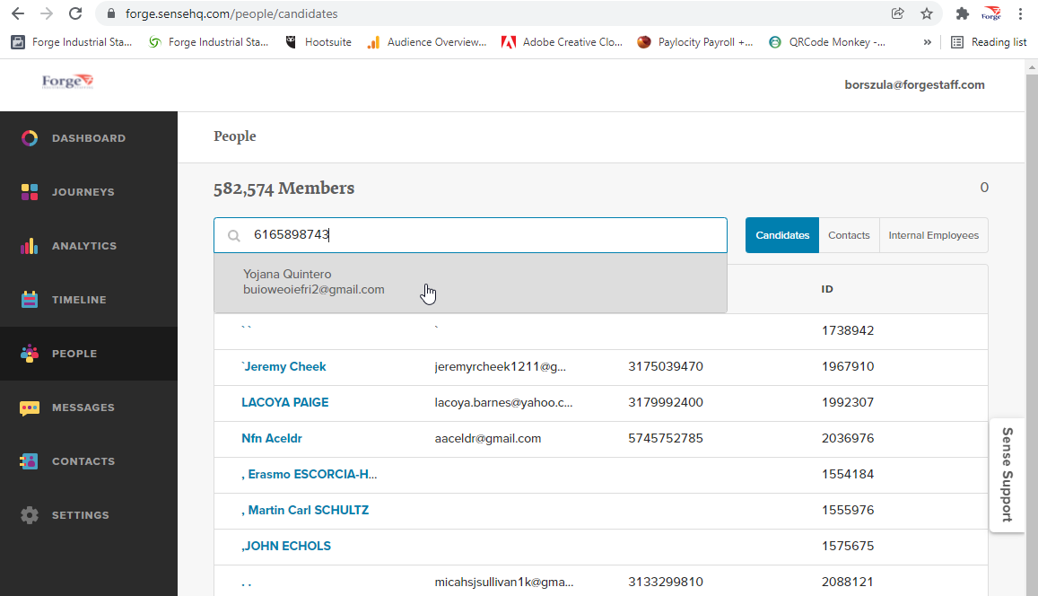 Log into Sense > People > find the person by name, email, phone or Avionte ID